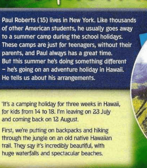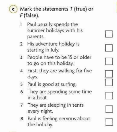 2 ______stay____ in a hotel / in a bed and breakfast / at a campsite / in a youth hostel / at home